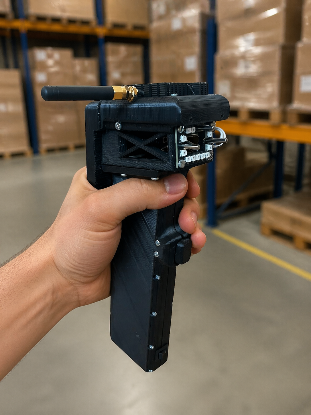 The current DOTScanner is a functional industrial prototype — custom enclosure with production-grade internals. It optically reads DOT codes, processes everything on-device, and syncs inventory data to a platform in real warehouse conditions. Not a concept. A working device.